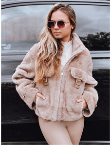 BASIC Béžový dámský kožíšek s ozdobnými klopami Béžová