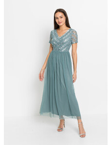 bonprix Maxi šaty z jemného tylu, s perličkovou výšivkou Fialová