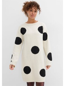 Bonprix Oversize pletené šaty s puntíky béžová Žena