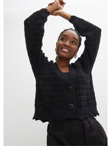 Bonprix Ažurový pletený kabátek z čisté bavlny černá Žena