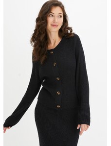 Bonprix Žebrovaný pletený kabátek z viskózové směsi černá Žena