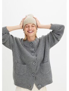 Bonprix Pletený kabátek s ozdobnými knoflíky, z vlněné směsi šedá Žena