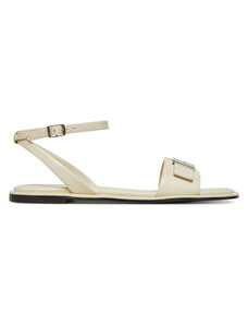 Kožené sandály Calvin Klein FLAT SANDAL W/CK HW - LTH dámské, béžová barva, HW0HW02367