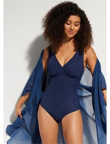 Bonprix Stahovací jednodílné plavky s výstřihem do V, střední tvarující efekt modrá Žena
