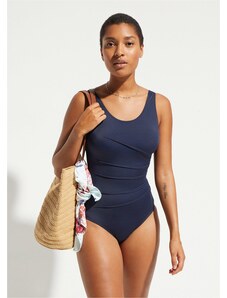 Bonprix Stahovací jednodílné plavky se středním tvarujícím efektem a nařasením modrá Žena