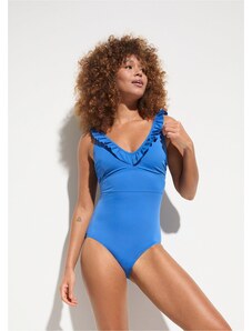 Bonprix Jednodílné plavky s prostřihem a volány modrá Žena