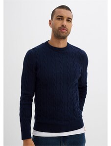 Bonprix Svetr s copánkovým vzorem, z recyklovatelné bavlny modrá Muž