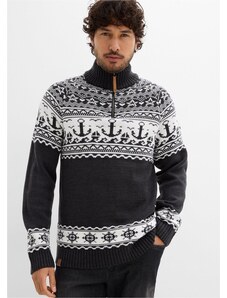Bonprix Námořnický svetr s norským vzorem a límečkem na zip šedá Muž