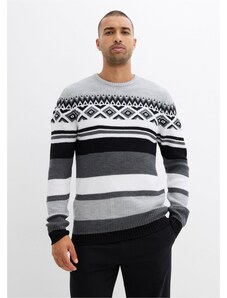 Bonprix Svetr s norským vzorem a límcem Troyer šedá Muž