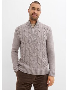 Bonprix Svetr s límečkem na zip a copánkovým vzorem šedá Muž