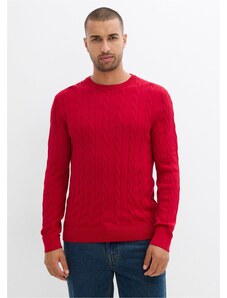 Bonprix Svetr z jemné pleteniny z měkké bavlněné směsi, s copánkovým vzorem, Slim Fit červená Muž