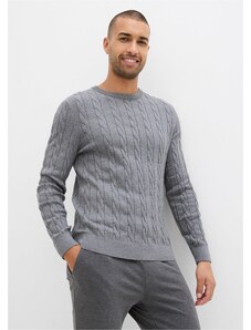Bonprix Svetr z jemné pleteniny z měkké bavlněné směsi, s copánkovým vzorem, Slim Fit šedá Muž
