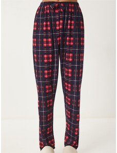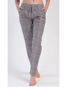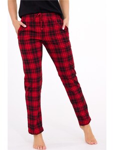 Cornette Červeno-černé kárované dámské dlouhé kalhoty na spaní Červená