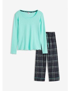 Bonprix Pyžamo s žebrovaným tričkem a flanelovými kalhotami zelená Žena