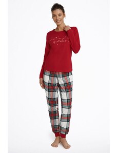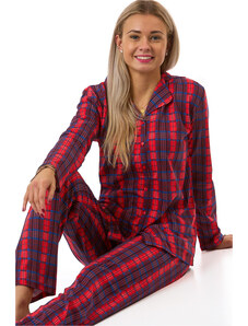 DN Nightwear Dámské flanelové pyžamo Simona červené káro