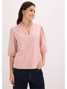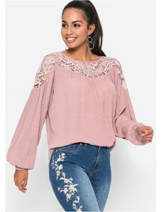 Bonprix Krajkové tričko s balonovými rukávy růžová Žena