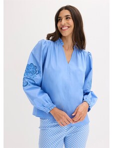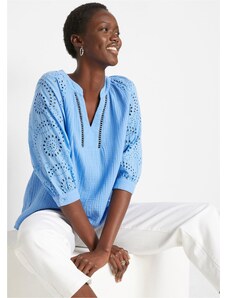 Bonprix Bavlněná tunika s dírkovanou výšivkou modrá Žena