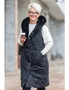 bonprix Vatovaná vesta z recyklovaného polyesteru, s odnímatelnou kapucí černá Žena