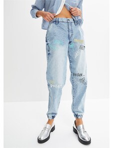 Bonprix Džínové kalhoty s laclem a střihem Boyfriend modrá Žena
