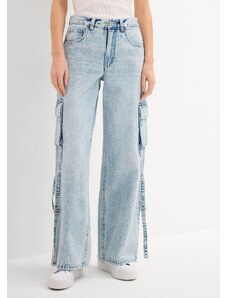 Bonprix Cargo džíny, Mid Waist, malý podíl streče, dlouhá délka modrá Žena