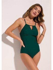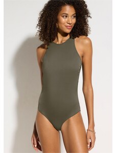 Bonprix Jednodílné plavky s hlubokým výstřihem na zádech zelená Žena