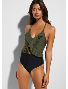Bonprix Jednodílné plavky s prostřihem a volány zelená Žena