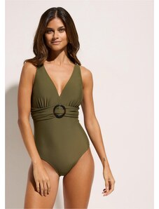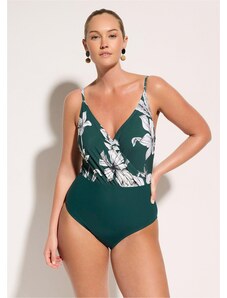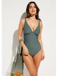 Bonprix Stahovací jednodílné plavky, lehký tvarující efekt, s výstřihem do V zelená Žena