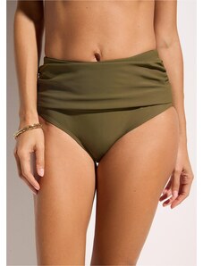 Bonprix Stahovací bikinové kalhotky s vysokým pasem, lehký tvarující efekt, s řasením zelená Žena