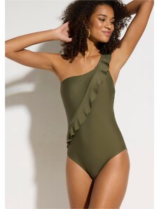 Bonprix Jednodílné plavky na jedno rameno, s odnímatelným ramínkem zelená Žena