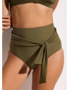 Bonprix Stahovací bikinové kalhotky s vysokým pasem, silný tvarující efekt, s vázačkou zelená Žena