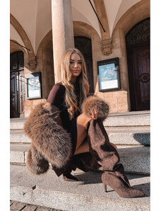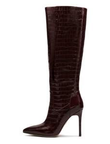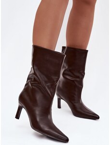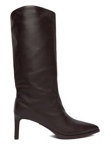 Boto Dámské kozačky na jehlovém podpatku bez zapínání v čokoládové barvě Mavilla
