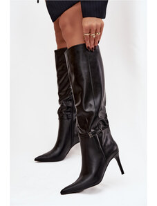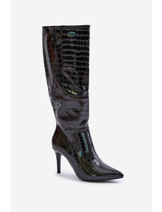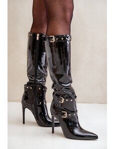 Boto FB3 Lakované kozačky na jehlovém podpatku s přezkami černé Emiraethe