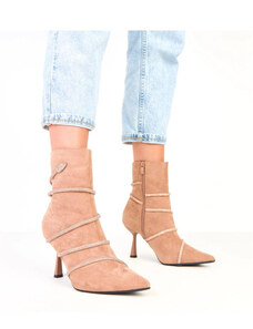 FashionStreet béžové semišové kozačky na podpatku ZY1031