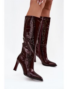 Inello Dámské kozačky na podpatku CLS-573 Vínová - Joalice Paris