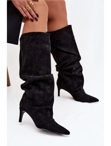 Boto Kozačky na podpatku z eko semiše