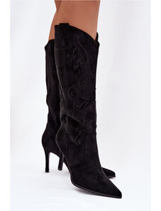 Boto Dámské kozačky na podpatku cowboye z eko semiše černé Belonia