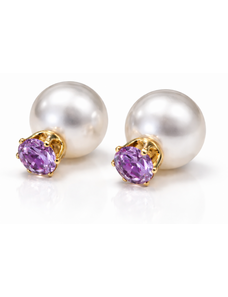 Flamenco Mystique Perlové náušnice s fialovým krystalem K70FIO