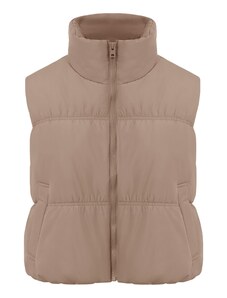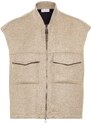 light beige front two-way zip fastening two front flap pockets cap sleeves rear elasticated hem