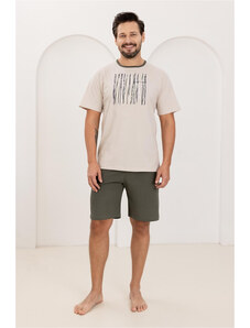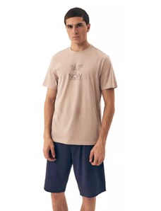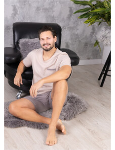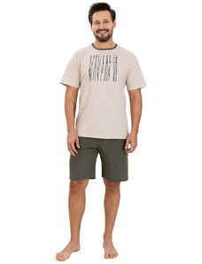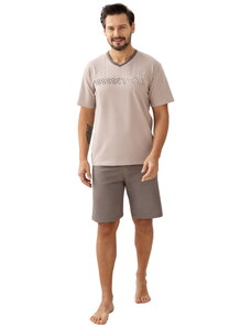 Pánské pyžamo ITALIAN FASHION BERT krátká print/cappuccino/cappuccino