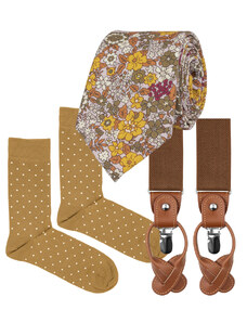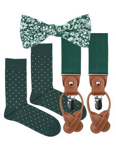 Stylová sada, která spojuje eleganci a rodinnou souhru. Zelený motýlek Sage green a ladící kšandy pro tátu i syna jsou ideální volbou na svatby, oslavy, rodinné focení nebo jiné slavnostní příležitosti. Cena sady je zvýhodněná oproti nákupu samostatných produktů. Sada obsahuje 4 produkty. Pánské kšandy a motýlek, dětské kšandy a motýlek. Všechny produkty jsou zabalené v samostatných dárkových krabičkách. 1x Šalvějově zelené, eukalyptové pánské kšandy Sage green s hnědými poutky tvar do "Y" na zádech variabilní zapínání - klip nebo knoflíky knoflíčky jsou součástí balení 1x Šalvějově zelený, eukalyptový motýlek Sage Green Motýlek má zapínání na háček, takže jej nemusíte vázat! Rozměry: výška 6 cm, šířka 12 cm Nastavitelná délka pásku: 32 - 46 cm Materiál: 100% bavlna 1x Šalvějově zelené dětské kšandy Sage green Jsou ideální pro děti od 3 do 14 let, ale záleží na výšce a tělesných proporcích dítěte. Před vytvořením objednávky proto doporučujeme dítě pro jistotu změřit. Minimální možná délka kšand od klipu po klip: 53 cm Maximální možná délka kšand od klipu po klip: 83 cm 1x Šalvějově zelený, eukalyptový dětský motýlek Sage Green Rozměry: výška 5,5 cm, šířka 9,5 cm Nastavitelná délka pásku: 25 - 45 cm Složení: 100% bavlna