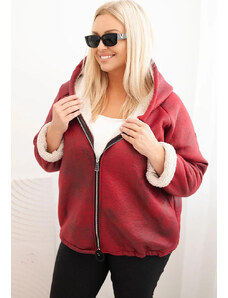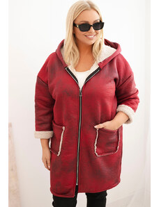 Kesi Vínový dámský Plus Size beránkový kabát s kapucí a kapsami Vínová