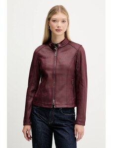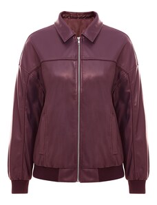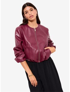 BASIC Dámská ramoneska z eko-kůže na zip bordó Vínová