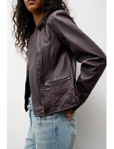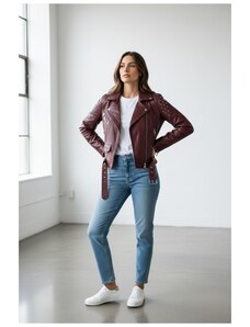 BASIC Dámská bordó koženková bunda typu křivák se zipy Červená