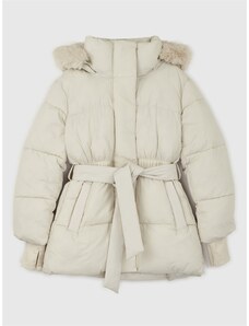 Butikovo Béžová zimní bunda s páskem a kožešinou