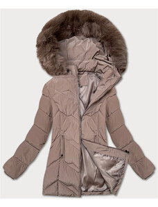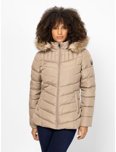BASIC Tmavě béžová dámská zimní prošívaná bunda CITYGLANCE s ozdobnou kožešinou