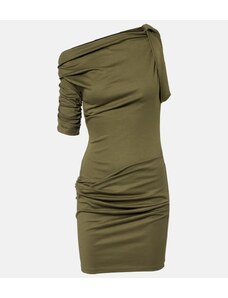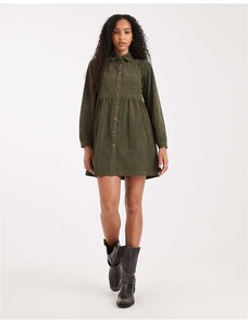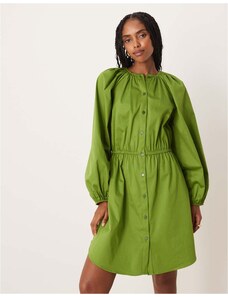 ASOS DESIGN poplin button down blouson mini dress with tie in khaki-Multi