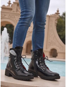 CafeNoir Černé kotníkové boty na šněrování