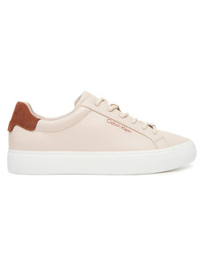 Kožené tenisky Calvin Klein LOW PRO CUPS LACE UP béžová barva, HW0HW02683