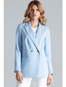 Perso Světle modrý dámský lněný blejzr se 7/8 rukávy Světle modrá