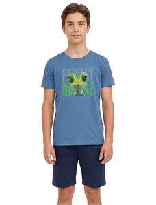 Světle modrá chlapecká pyžama s krátkými rukávy